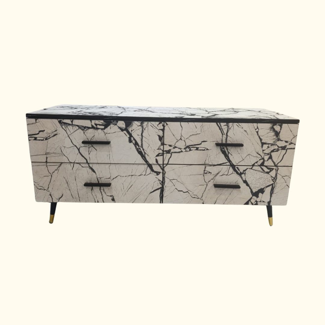Whether you?re mounting your TV or placing your LED screen on top, this console provides a sleek and sturdy foundation. The bold veined marble pattern adds visual interest while easily complementing contemporary interiors. Its ample drawer space is ideal for organizing media, remotes, books, or decorative items ? keeping your living area neat and stylish.