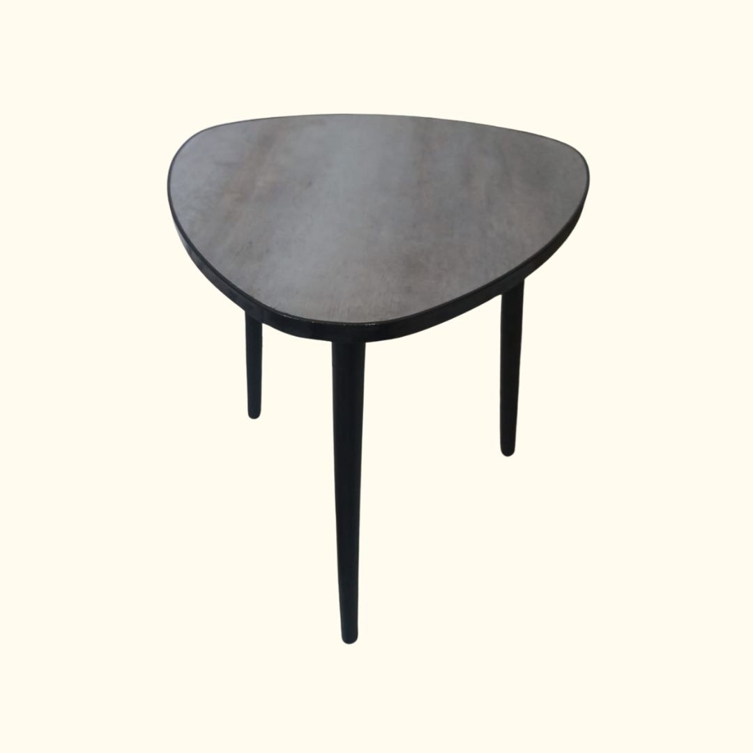 Add retro appeal to your space with the Mid-Century Teardrop Triangular Side Table. Its triangular MDF top boasts a woodgrain gray finish that blends beautifully with any decor, while three elegantly tapered wooden legs offer timeless style and stability. Compact yet visually distinctive, this table is a perfect fit for small corners, beside sofas, or next to beds.